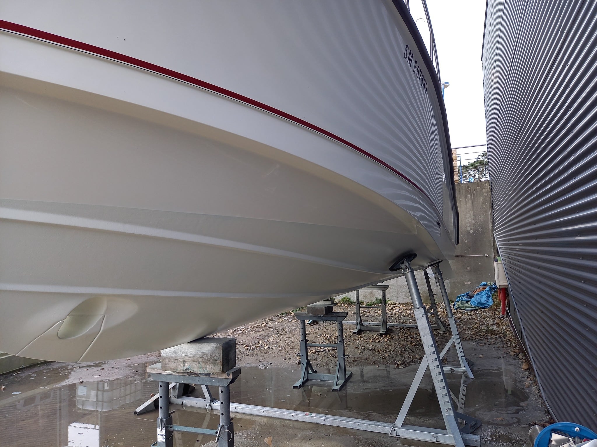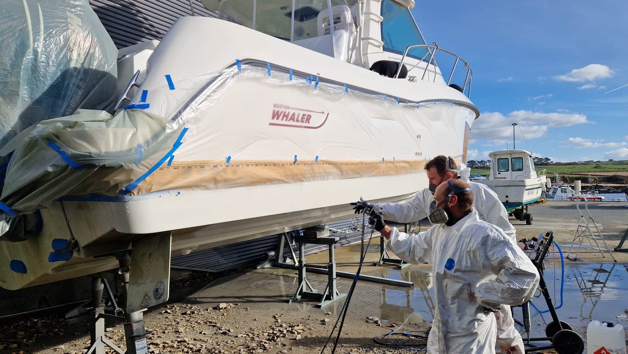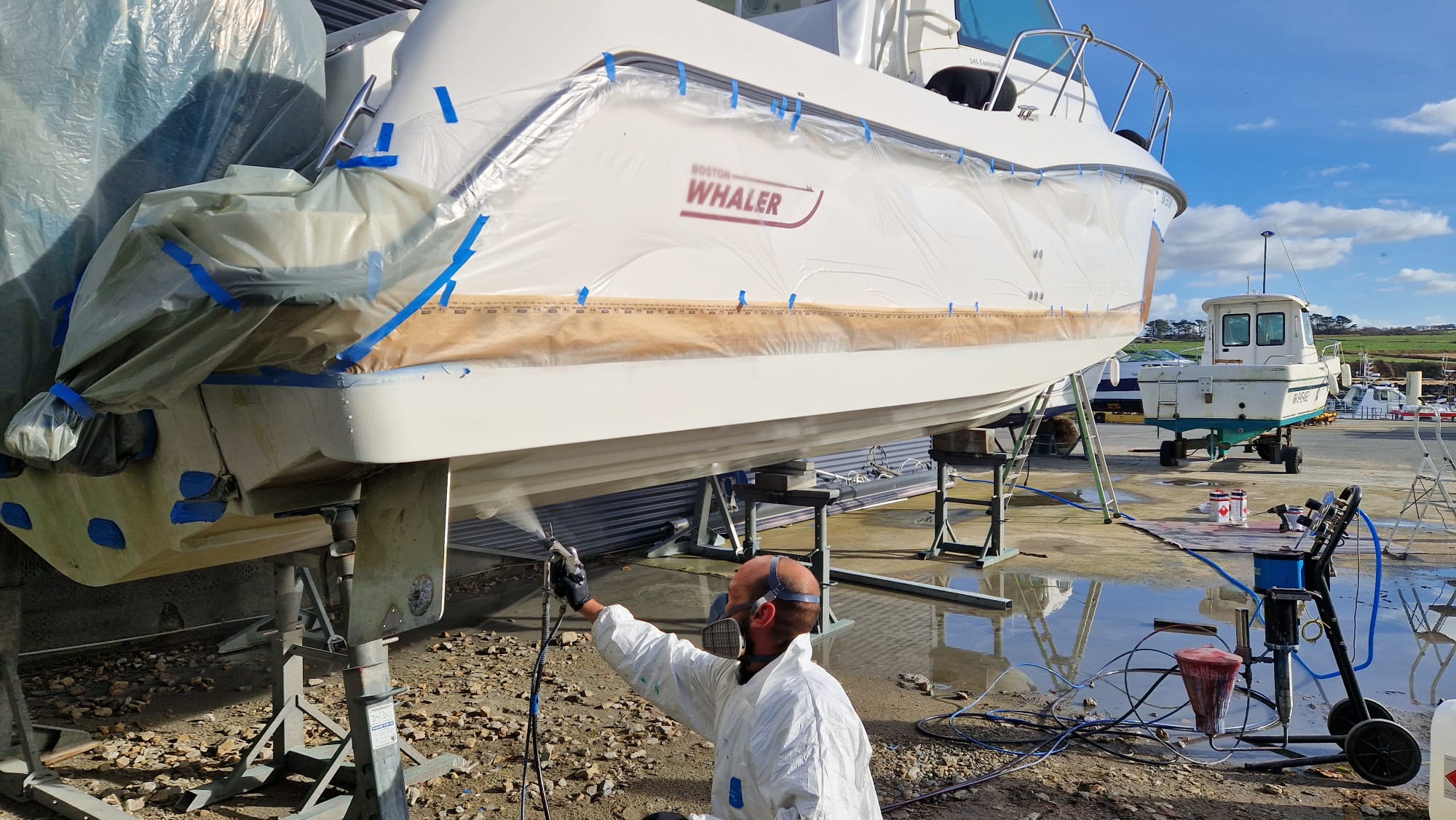 Nous avons profité d’une fenêtre météo pour passer un antifouling au pistolet sur ce Boston Whaler. Envie d’une carène impeccable, faites appel au Chantier Naval du Crapaud pour vos travaux de coque ! Equipé d’une pompe airless Icon® AnestIwata le rendu est parfait.