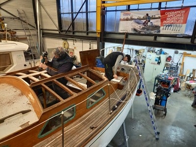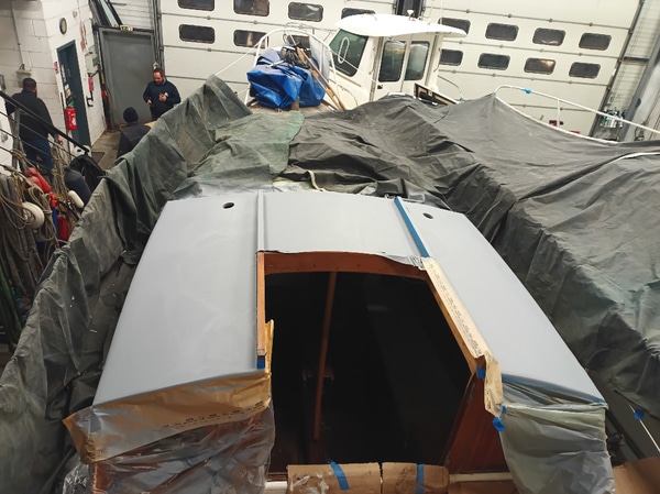 Ce magnifique plan « Cornu » dériveur lesté de 1962 sortie du Chantier Lesquin avait son roof fragilisé par des infiltrations.