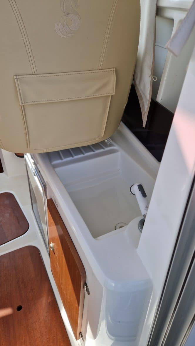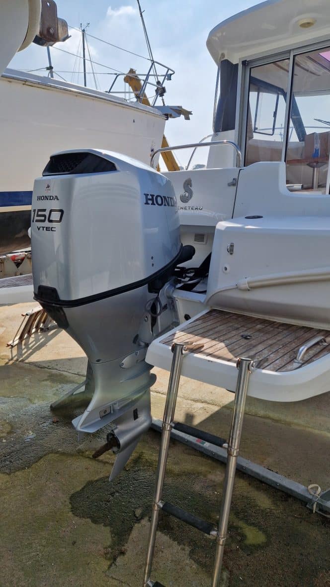 Cette belle unité est en très bon état, son cockpit auto videur sera l'espace privilégié pour les pêcheurs mais mais également un espace de convivialité grâce à sa sellerie, sa table amovible et un grand coffre .