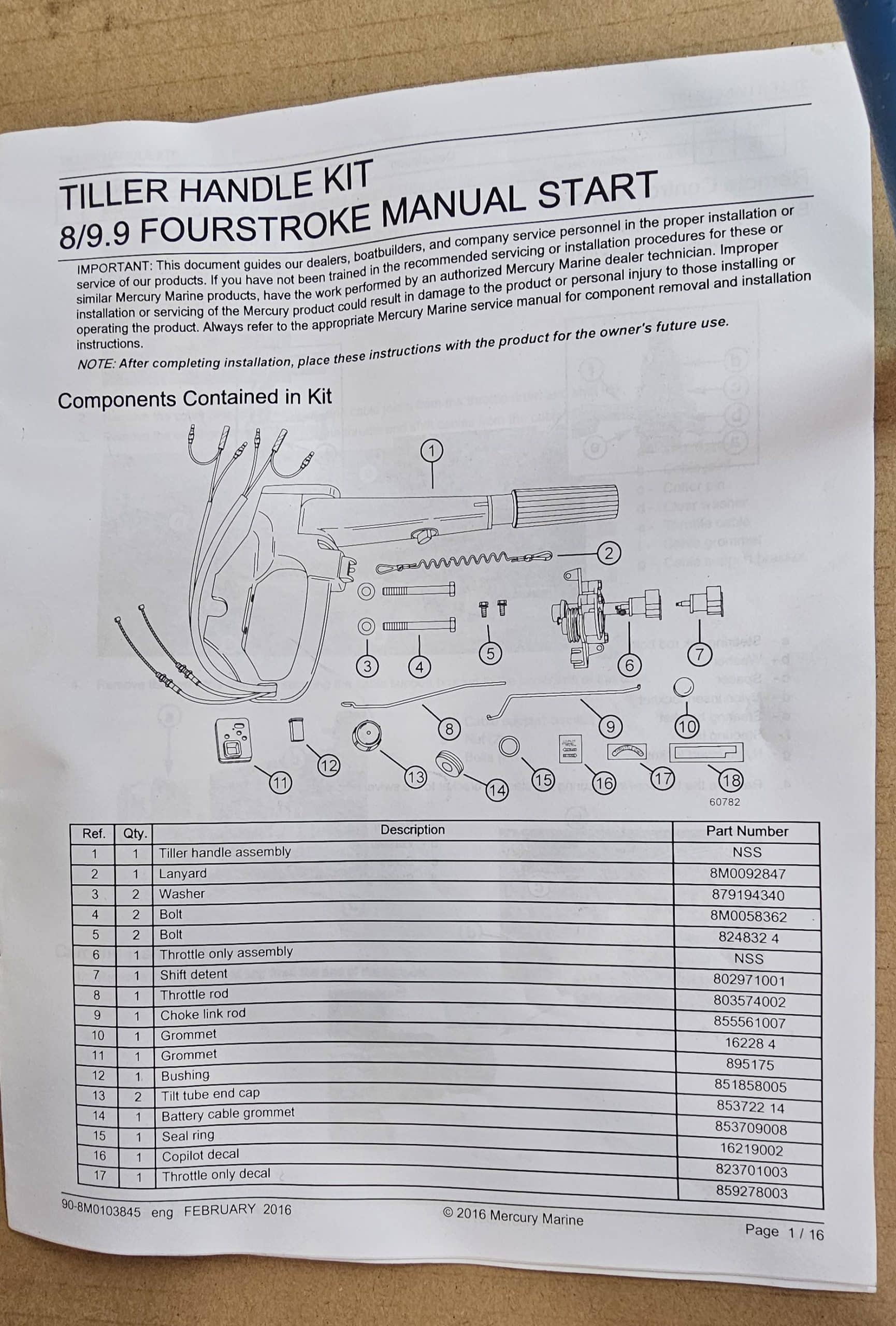 Vente KIT DE CONVERSION BARRE FRANCHE MERCURY pour 8CV ET 9CV 4T. Vente suite erreur de commande. Pièce neuve dans son emballage d'origine. MERCURY TILLER KIT8 / 9.9 CC MODELS (8M0103839)
