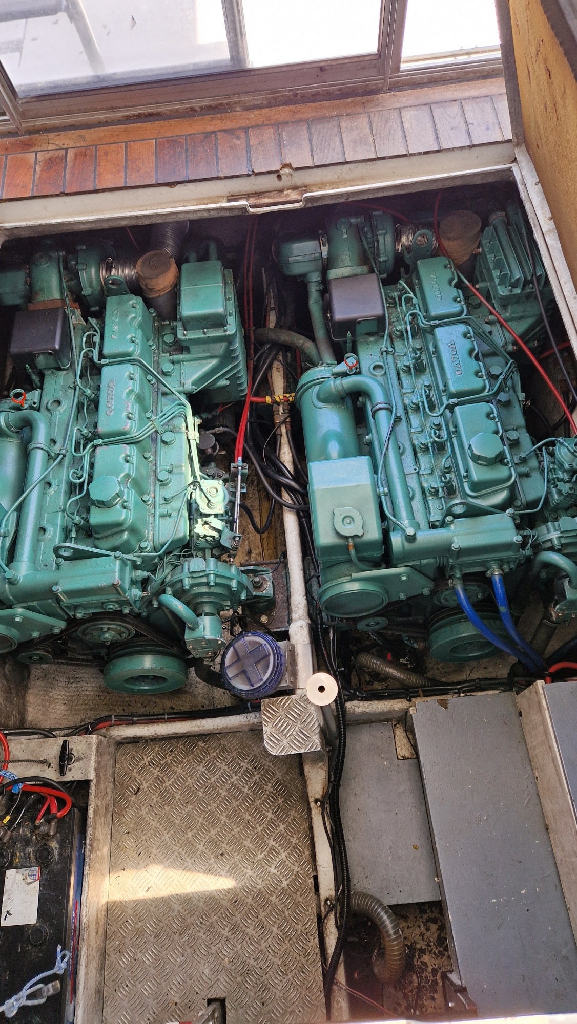 Motorisé avec 2 Volvo Penta TAMD41B en bon état les moteurs ont été révisés .Le bateau a été équipé d'un propulseur d'étrave au printemps 2025 ce qui vous facilitera les manœuvres de port.