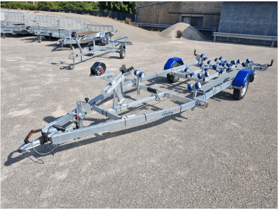 Remorque bateau multi-rouleaux freinée multi rouleaux, simple essieux, feux à led, immergeable